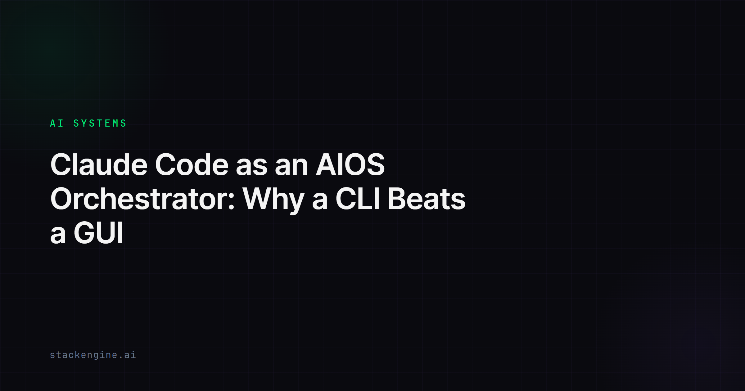 For more on why a CLI-based orchestrator outperforms GUI alternatives for this use case, see Claude Code as an AIOS Orchestrator: Why a CLI Beats a GUI.